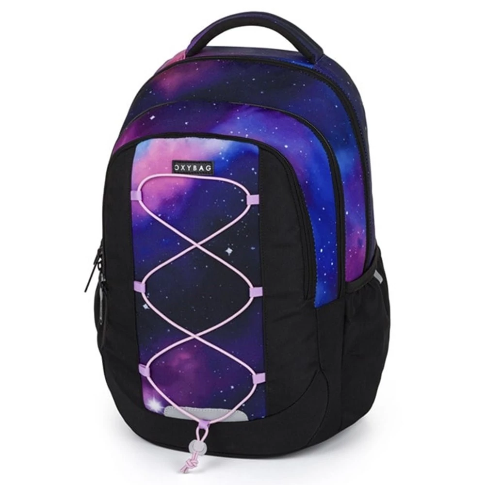 Az OXY Touch hátizsák ideális választás 3. osztálytól. Háromrekeszes kialakítása bőséges helyet biztosít tankönyveknek, füzeteknek, uzsonnának és egyéb szükséges felszereléseknek. A fő rekeszben laptopzseb található, az elülső zsebben pedig rendszerező és kulcskarabiner. Az oldalzsebben kényelmesen elfér egy kulacs. Az anatómiailag formázott, légáteresztő hátrész, valamint az állítható váll- és mellkaspántok kényelmes viseletet biztosítanak teljes terhelés mellett is. A megerősített, vízálló alj védi a tartalmat a nedvességtől, a fényvisszaverő elemek pedig növelik a biztonságot. Az elején praktikus gumipánt található, amely alá például egy vékony pulóver rögzíthető. Űrtartalom: 25 l, teherbírás: 8 kg.