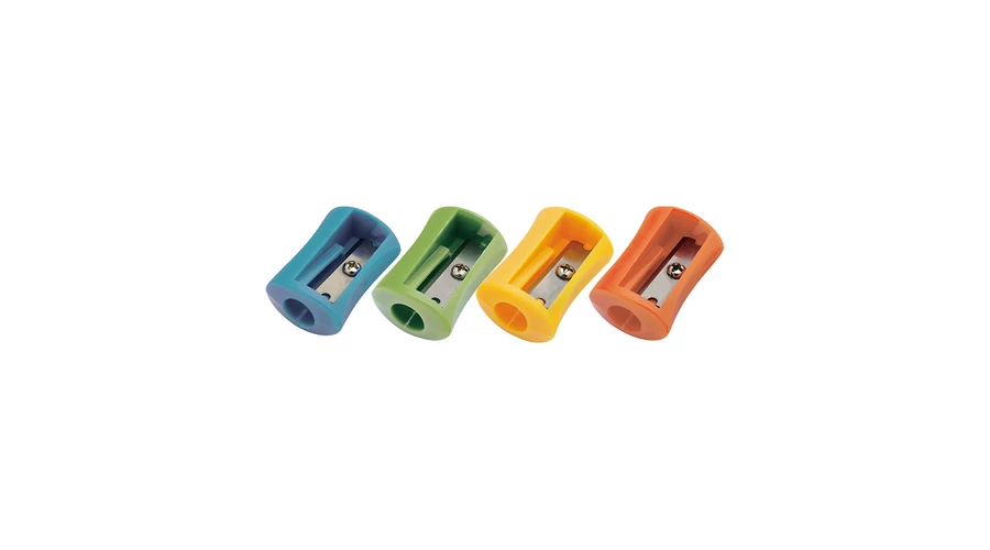 Áttetsző, színes műanyagból készült 1 lyukú hegyező forgácsgyűjtő tartállyal.