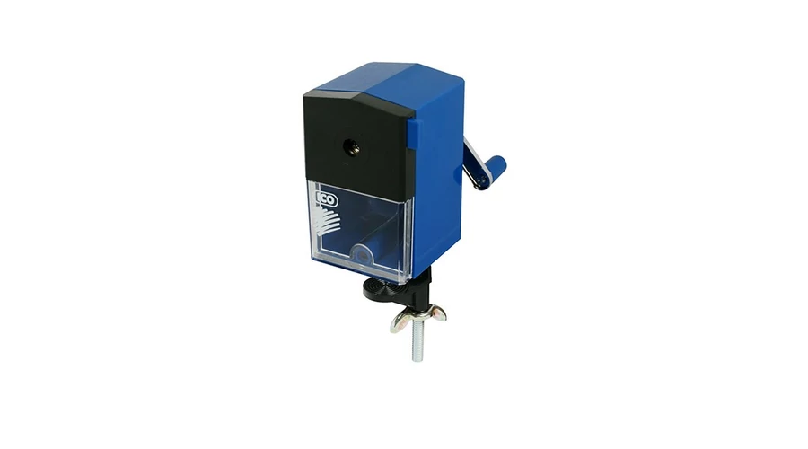 Asztalra rögzithető hegyezőgép,fém befogóval és hegyező szerkezettel. Normál grafit és színes ceruzák hegyezésére.