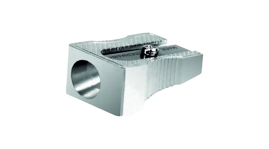Fém test, egylyukú faragó normál és vastag ceruzák hegyezésére, fém pengével (Made in Germany), 8,3 mm vastagságú hatszögletű, háromszögletű és kerek ceruzákhoz