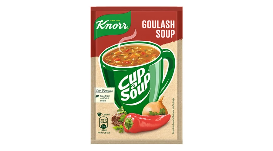 Burgonyakeményítő 13,5%, Vöröshagymapor1, 9,9% tészta (DURUMBÚZADARA, só), Élesztőkivonat, 8,8% fűszerpaprika1, Glükózszirup, Jódozott só (só, kálium-jodát), Paradicsompüré-por1, Só, Cukor, Fokhagymapor1, Aromák (TEJJEL), 1,2% marhahús-granulátum (marhahús, só, maltodextrin, TOJÁSFEHÉRJEPOR), Piros kaliforniai paprika1, Zöldfűszerek (0,6% petrezselyem1, majoránna), Karamellszirup, Kömény, Maltodextrin, Petrezselyemgyökér1, 1Fenntartható gazdaságból