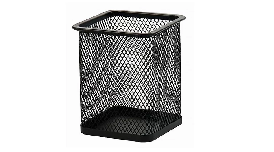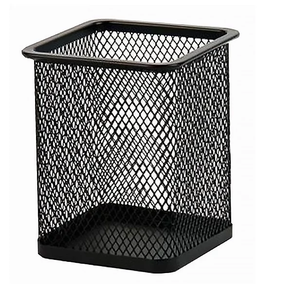 Fémhálós, fekete, szögletes írószertartó pohár. Irodai és otthoni használatra egyaránt alkalmas.