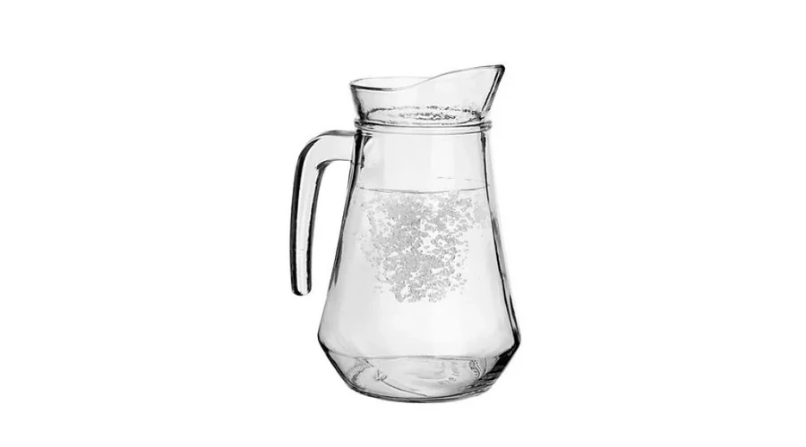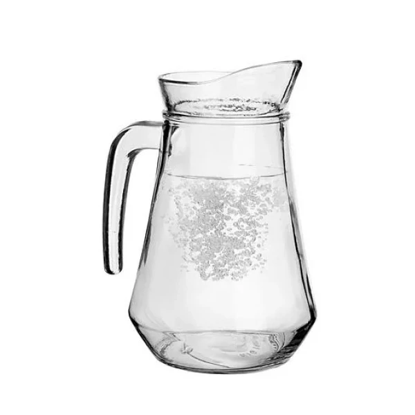Üveg vizes kancsó. Űrtartalom: 1 liter. Alkalmas víz, gyümölcsé, tea tárolására. Mosogatógépbe tehető.