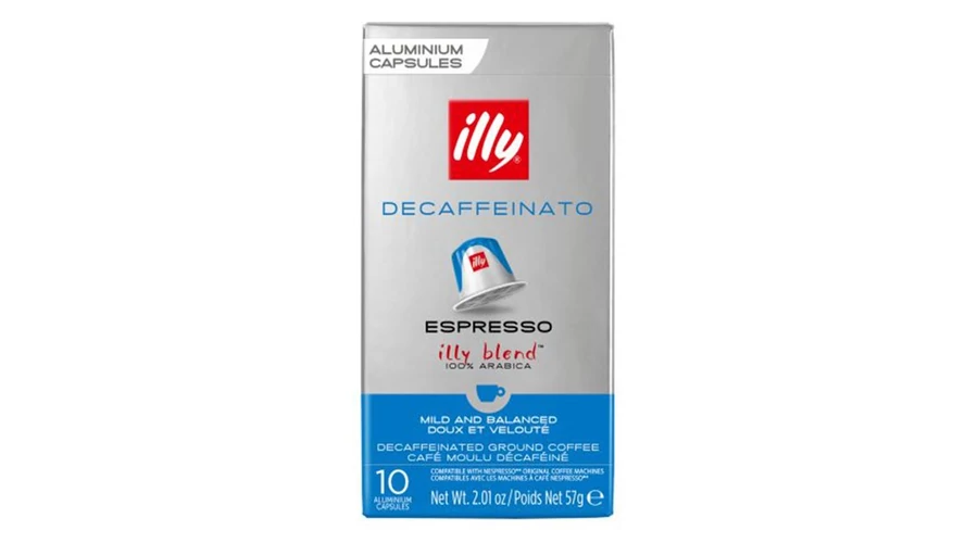 Kávékapszula ILLY Nespresso Espresso koffeinmentes. Kiszerelés: 10 kapszula/doboz. Összetevők: 100% koffeinmentes kávé.