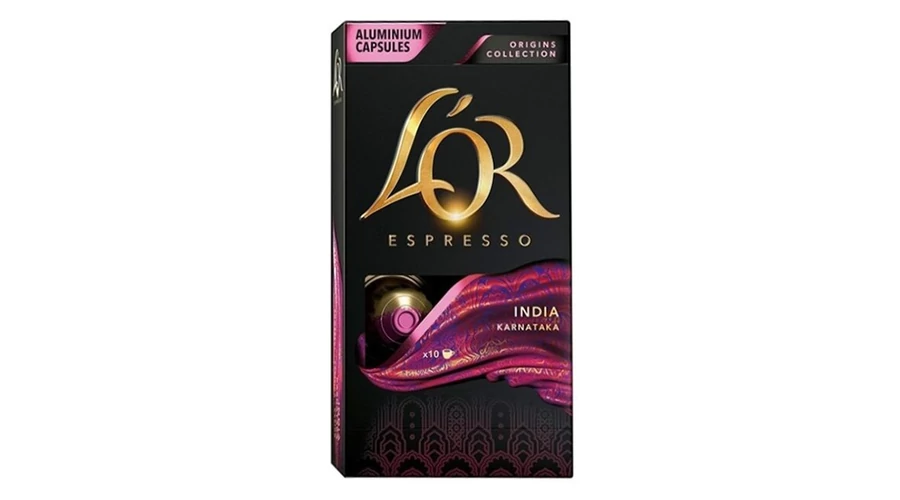 L’OR Nespresso kávékapszula. India: Karnataka fűszeres és gyümölcsös jegyek, sötét karamell és a kakaó ízével. Erősség: 10. Készíthető kávé: espresso. Kiszerelés: 10 kapszula/doboz.