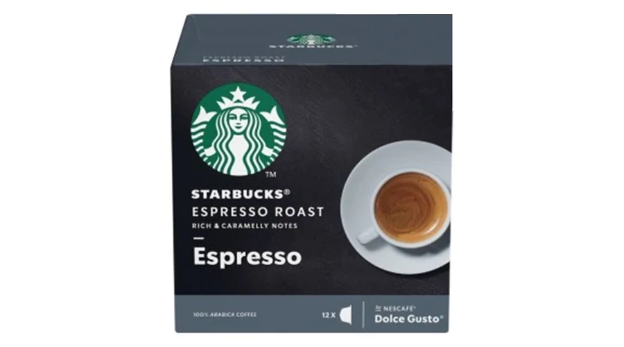 Kávékapszula STARBUCKS by Nescafé Dolce Gusto Espresso Roast. Kiszerelés: 12 kapszula/doboz. 100% Arabica kávé.