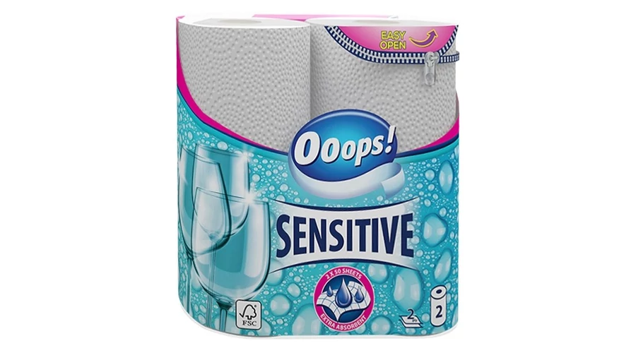 Kéztörlő tekercses háztartási OOOPS! Sensitive 2 rétegű 2 tekercses