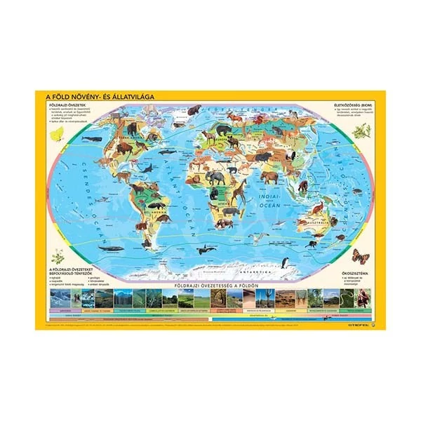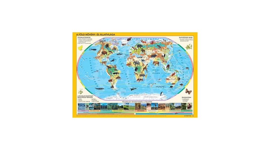 „A Föld állat- és növényvilága című könyöklőnk élethű, művészi pontossággal készült, egyedi rajzokkal mutatja be földünk állatvilágát, ügyesen egyensúlyozva a jól ismert fajok és a különlegességek felvonultatása között. Az állatrajzokat egy hiteles, jól használható világtérképen helyeztük el, amely egyszersmind bemutatja Földünk „övezetességeit” is – a tundrákat, tajgákat, sivatagokat és a többit –, azaz az éghajlati sajátosságok alapján kialakult növénytakarót, és az ezekből következő sajátos ökoszisztémát. Így könyöklőt nézegetve, akár gyermek, akár felnőtt felhasználóról is legyen szó, a biológia- vagy földrajzórán elhangzó, elsőre homályosnak tűnő fogalmak is egyből világossá válnak. A termék alján látható, élőhelyenkénti jellegzetes kis fényképek szintén a jobb megértést szolgálják. A könyöklő hátoldalán, a még jobb tisztánlátás végett, világtérkép nélkül, nagyobb méretben, az égövek szerint sorba rakva láthatjuk az előoldalon szerepeltetett állatrajzokat.”