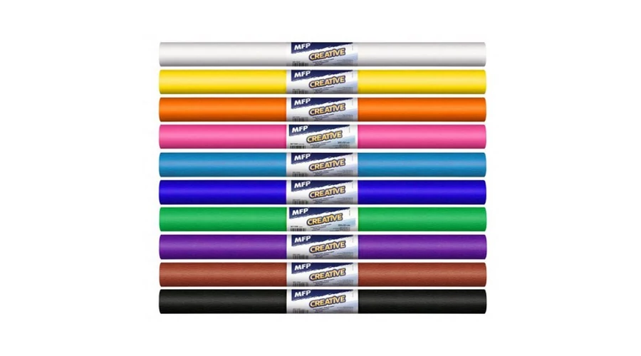 Egyszínű, dekorációs krepp-papír. Mérete: 50 x 200 cm, 20 g, 50 %-os kreppelés. A csomag tartalma: 10 alapszín mixelve.