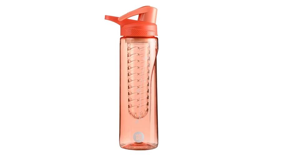 CAMLOCK WAVE + TRITAN: 750 ml-es 100% BPA mentes korall színű tritán műanyag palack gyümölcs tartállyal. Modern, ergonomikus formája kényelmes fogást biztosít.