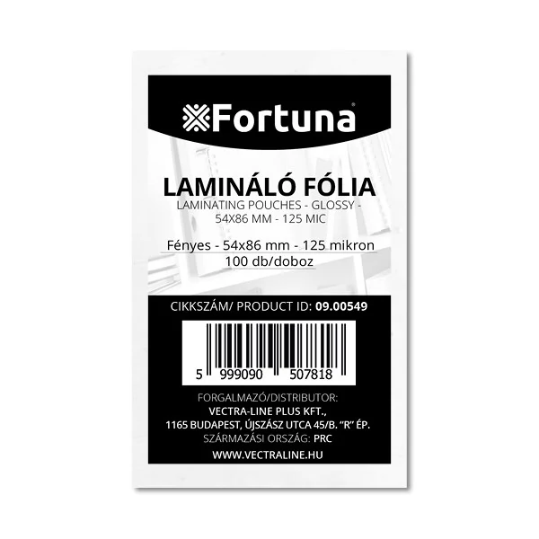 Lamináló fólia FORTUNA 54x86mm 125 mikron fényes 100/dob