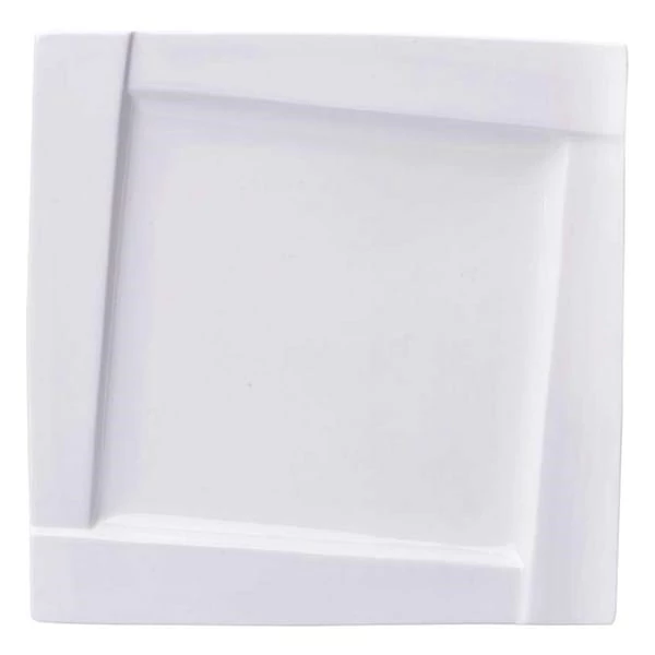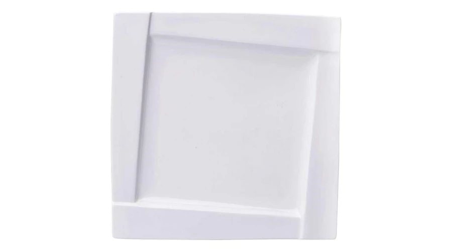 Lapostányér a Kubiko családból, melyet modern geometrikus fehér porcelán jellemez. A Kubiko porcelán vitathatatlan előnye a fokozott karcállóság és a magas hőmérséklettel szembeni ellenállás. Mosogatógépben és mikrohullámú sütőben alkalmazható.