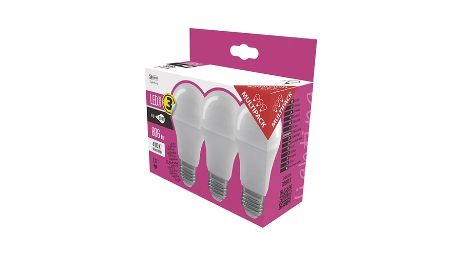 LED izzó EMOS E27 8,5W természetes fény 4100K 3db/doboz