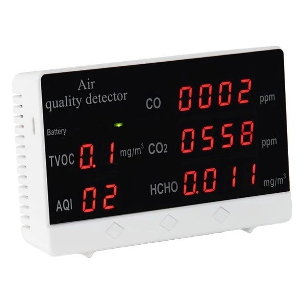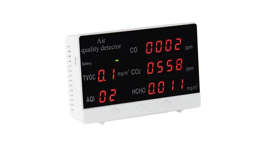 Kompakt levegőminőség-mérő (AQI) készülék a szén-dioxid (CO2), a formaldehid (HCHO) és az illékony szerves vegyületek (TVOC) koncentrációjának meghatározására