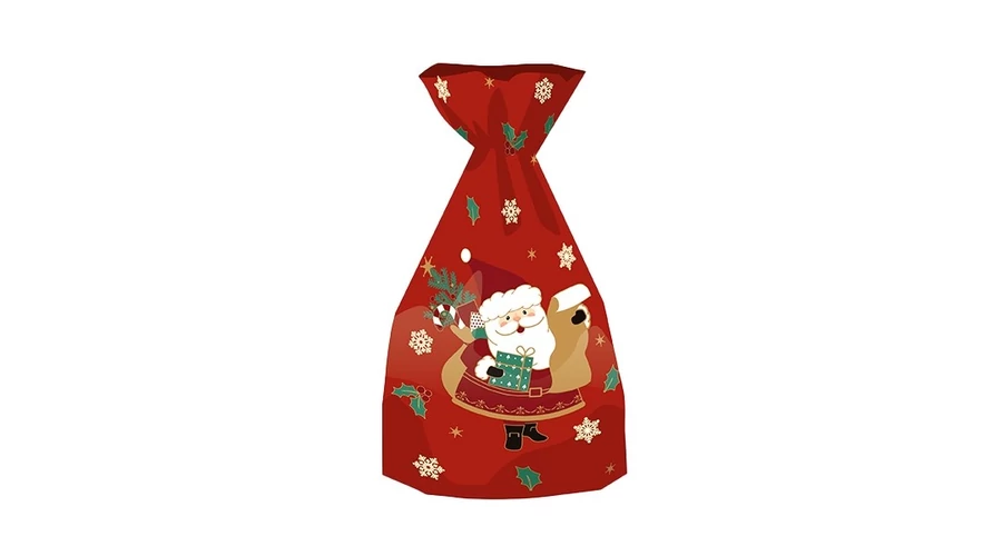 Mikulászacskó műanyag 15x35 cm Puttonyos Mikulás 100 darabos
