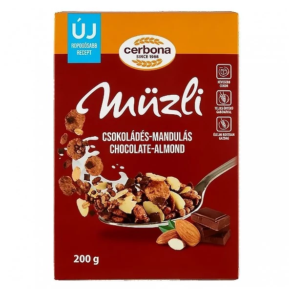 Müzli CERBONA csokoládés mandulás dobozos 200g