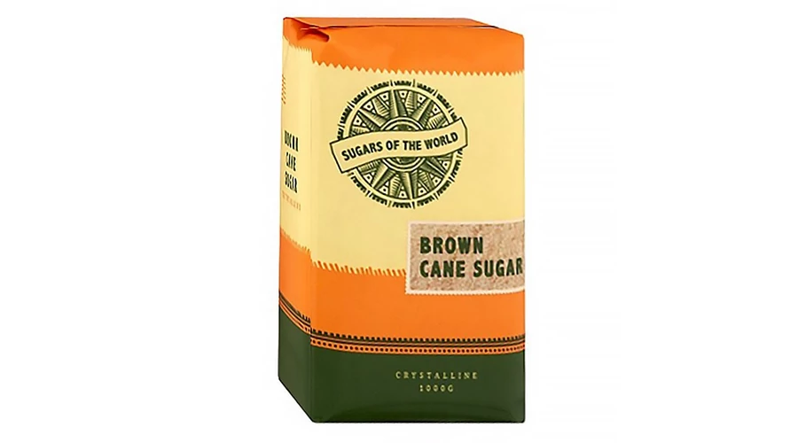 Barna nádcukor. Cukornádból hagyományos eljárással készült. Márkája: Sugars of the World. Mennyiség: 1000 gr. / zacskó.