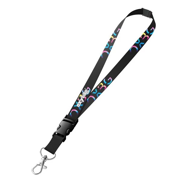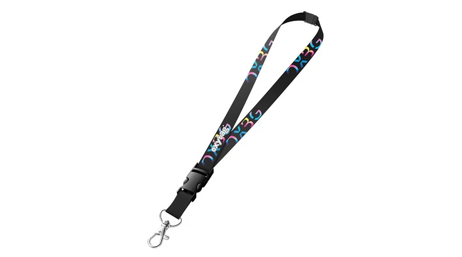 Nyakba akasztható kulcstartó színes mintával. Praktikus karabinerrel rendelkezik kulcsok vagy belépőkártya rögzítéséhez, valamint egy lecsatolható kapoccsal a kényelmes használatért.