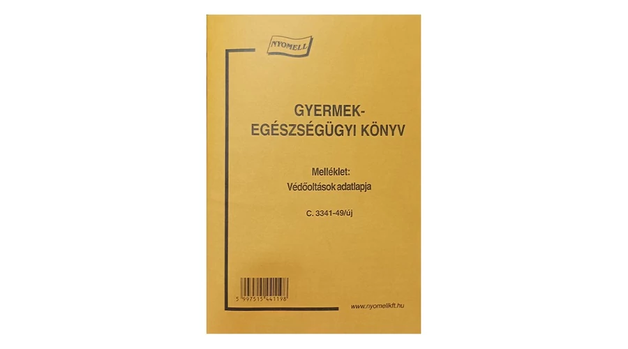 Gyermekegészségügyi kiskönyv. Méret: 120x170xmm, álló, 32 oldal+borító+védőoltások adatlapja 16 oldal. Minőségi belív, karton fedlap. Kiszerelés: 50 db/csomag.