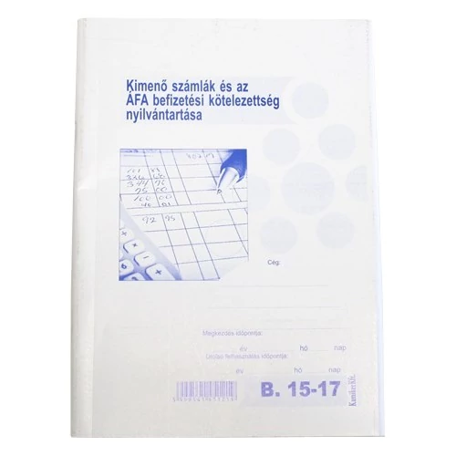 Kimenő számlák nyilvántartója A/4. A/4 méretű, álló, 50 lapos. Minőségi belív, karton fedlap. Kiszerelés: 20 db/csomag.