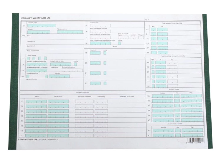 Nyomtatvány munkaügyi nyilvántartó tasak A/4