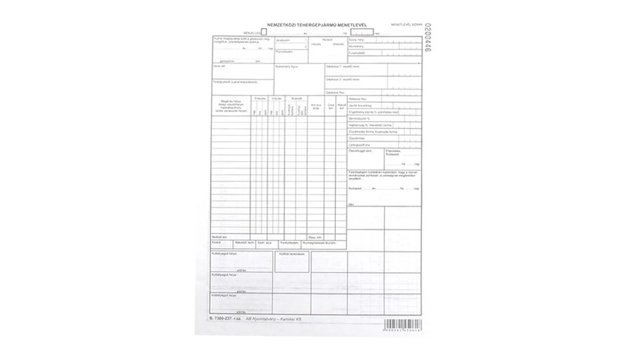 Nyomtatvány nemzetközi tehergépkocsi menetlevél