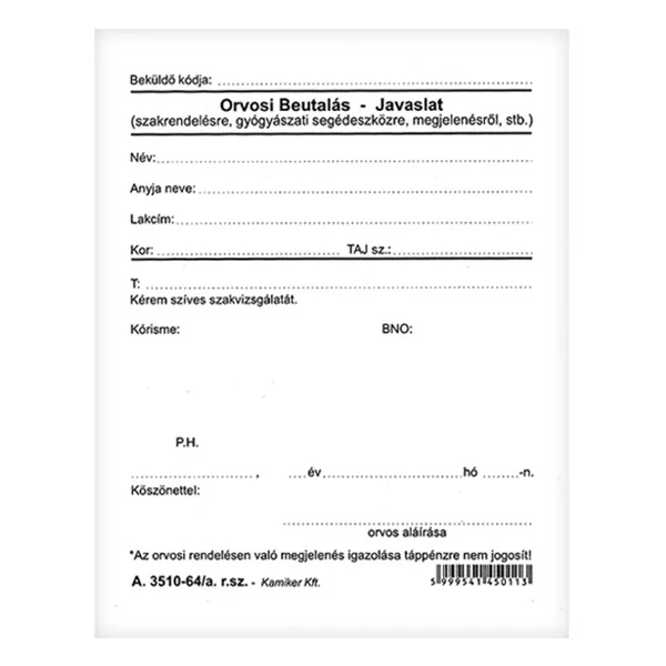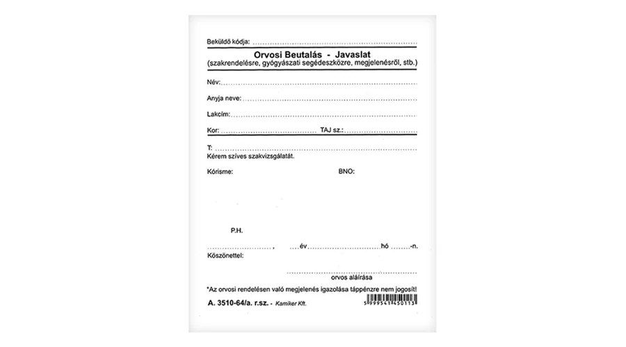 Nyomtatvány orvosi beutaló-javaslat