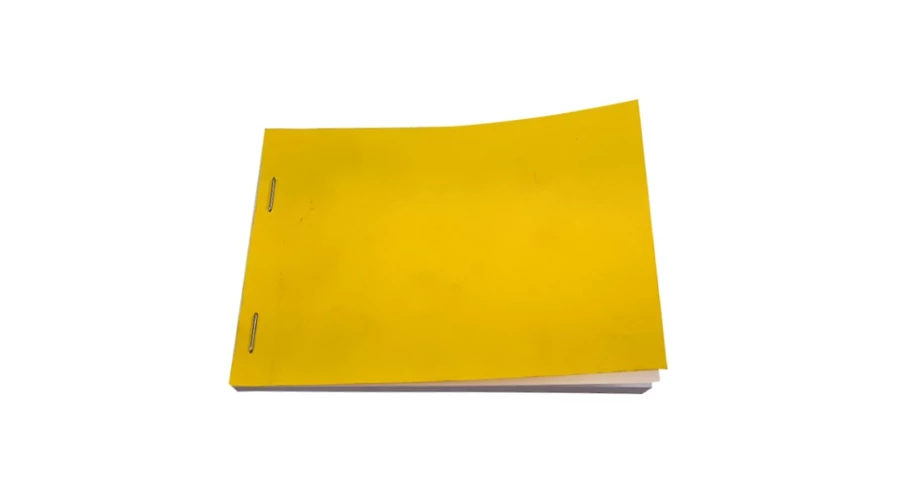 A/6 méretű 3 példányos, fekvő kivitelű, minőségi belívvel és karton fedlappal rendelkező nyomtatvány.