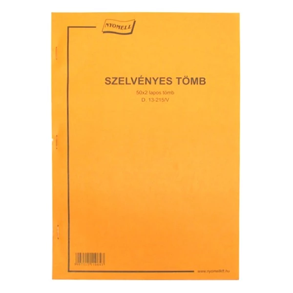 Szelvényes tömb A/4 vegykezelt. A/4 méretű, álló, 50 lapos, 2 példányos. Minőségi belív, karton fedlap. Kiszerelés: 10 db/csomag.