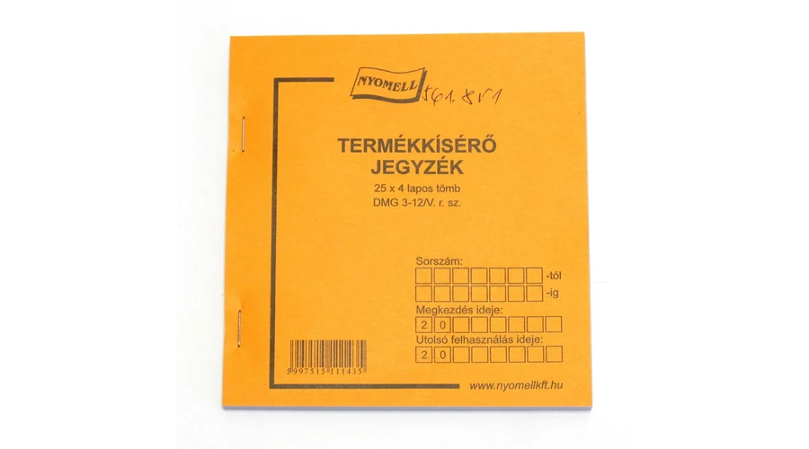 135x150 mm méretű, álló, 25 lapos, 4 példányos.