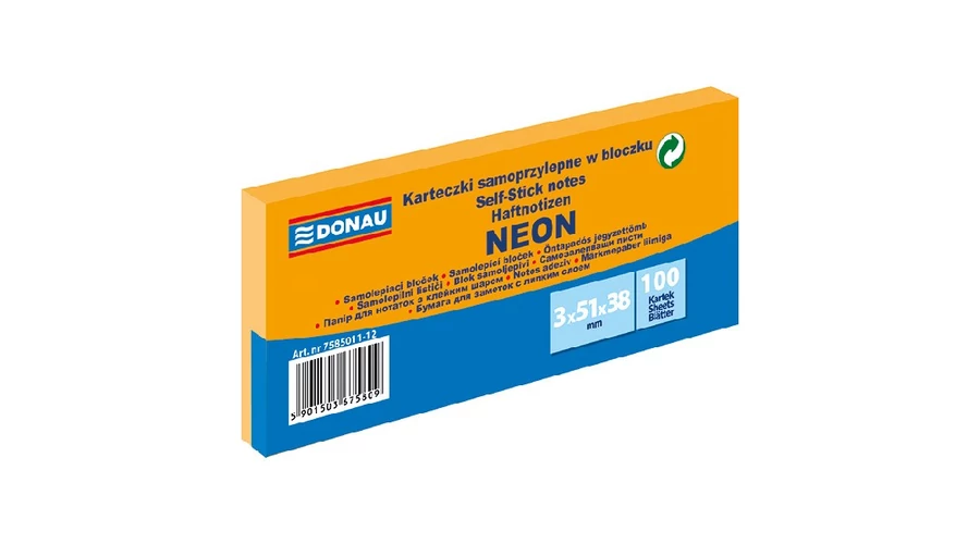 Öntapadó jegyzettömb DONAU 38x51 mm 3x100 lap neon narancssárga