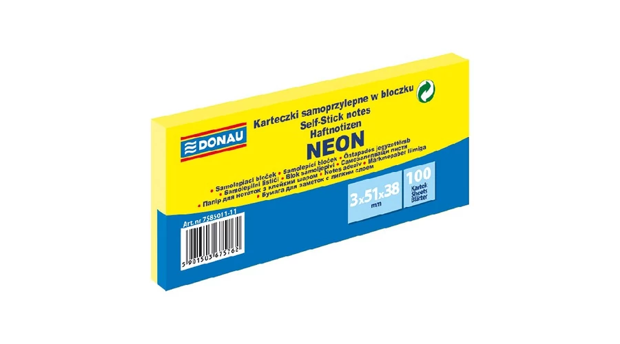 Öntapadó jegyzettömb DONAU 38x51 mm 3x100 lap neon sárga