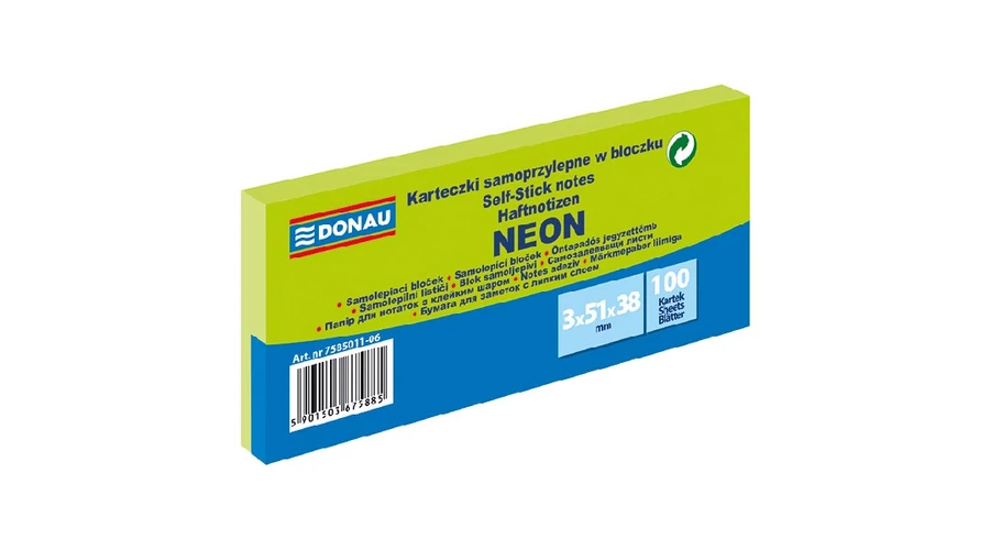 Öntapadó jegyzettömb DONAU 38x51 mm 3x100 lap neon zöld
