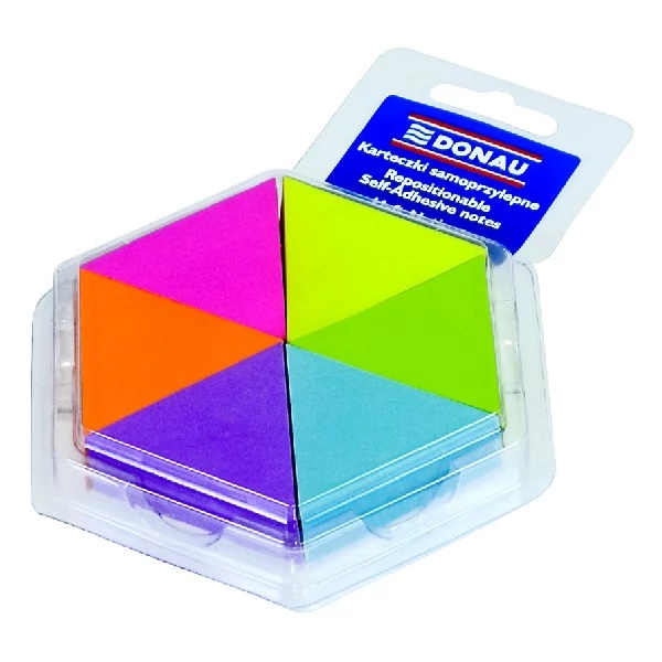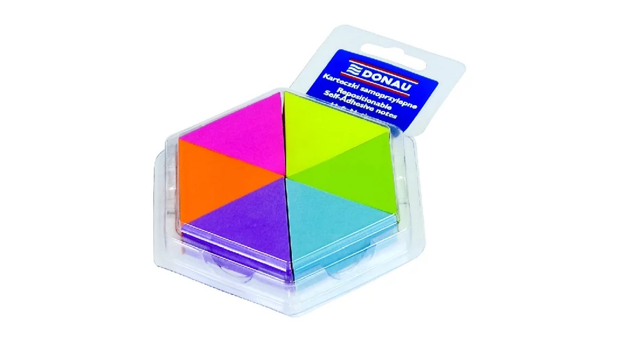 Öntapadó jegyzettömb DONAU 43x50 mm 6x150 lap háromszög forma vegyes neon színek