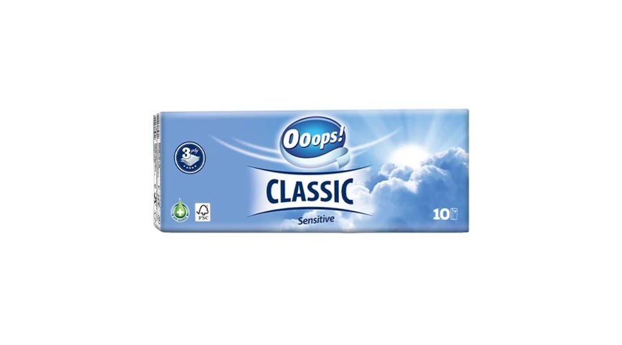 Papírzsebkendő Ooops! Classic Sensitive 3 rétegű 10x10 db-os