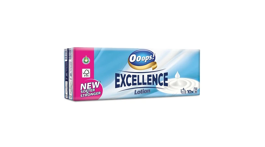 Papírzsebkendő OOOPS! Excellence Lotioned 4 rétegű 10x8 darabos