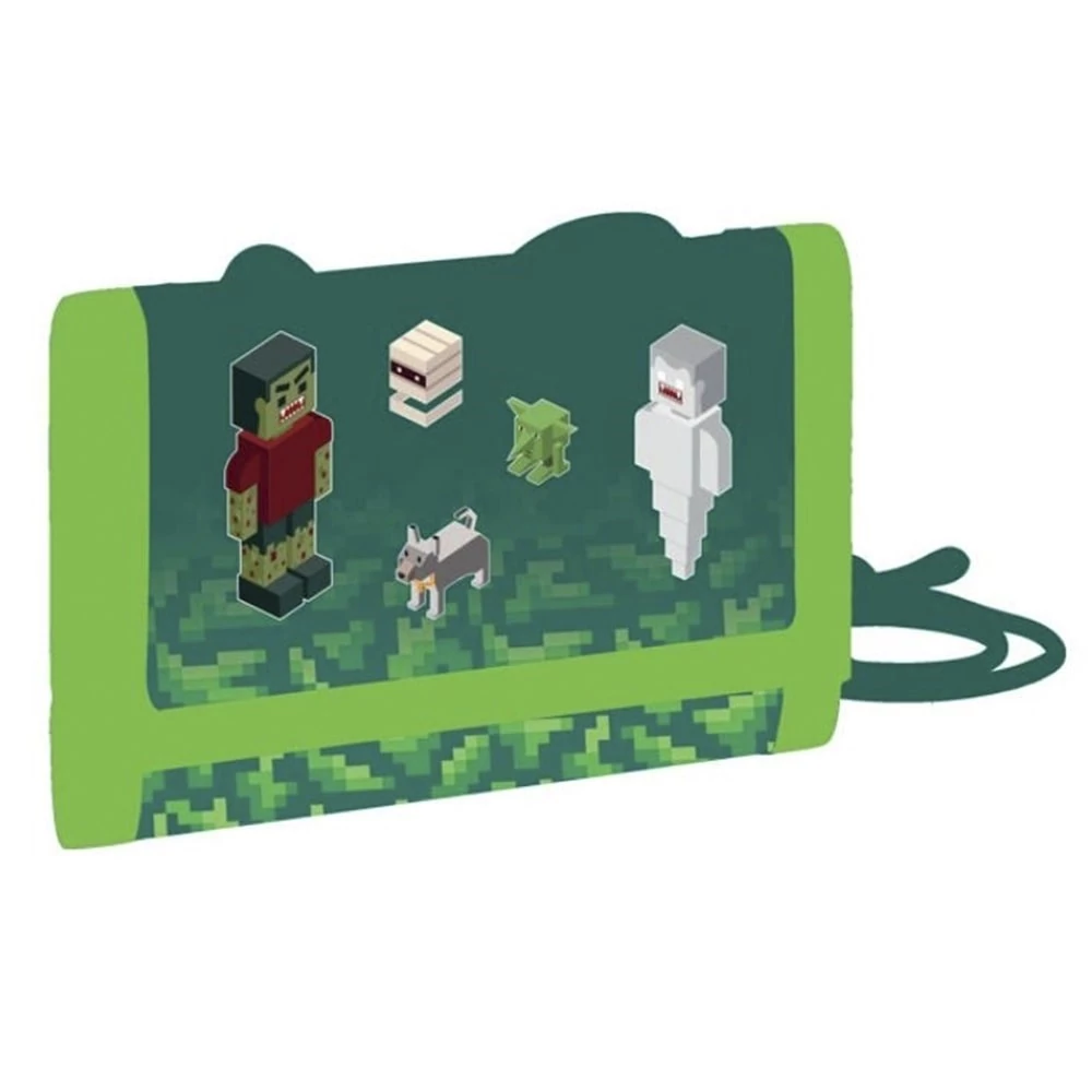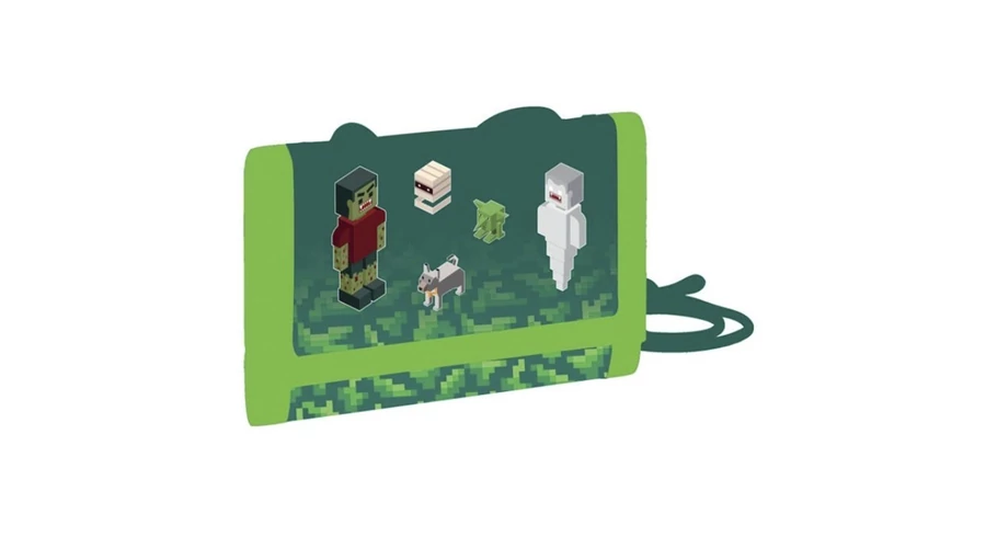 Gyermek textil pénztárca tépőzáras záródással és praktikus nyakpánttal. Hátoldalán zárható aprópénz-zseb található, belül pedig egy bankjegytartó rekesz, hat kártyatartó és egy átlátszó zseb.