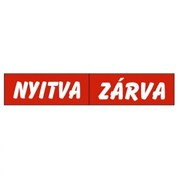 Kétoldalas tábla, egyik oldalon NYITVA másik oldalon ZÁRVA szöveggel.