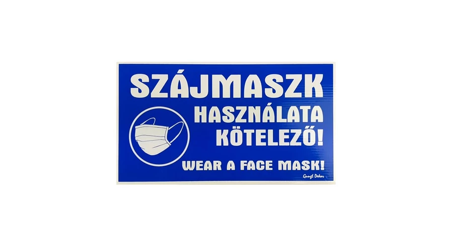 Piktogram Szájmaszk használata kötelező 25X14 cm kék alapon fehér