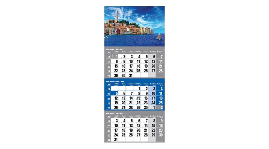 Speditőrnaptár REALSYSTEM 1 tömbös 3 havi kék Európa 2025.