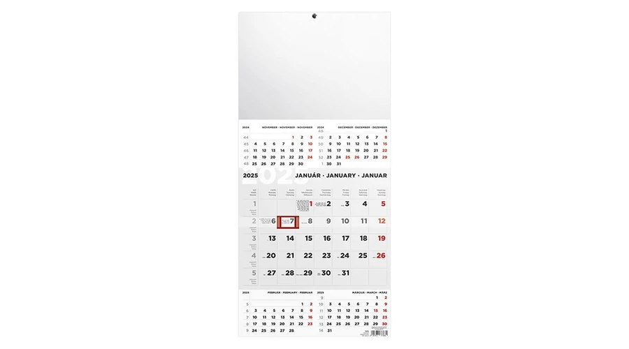 A naptár teljes mérete: 290x628 mm.