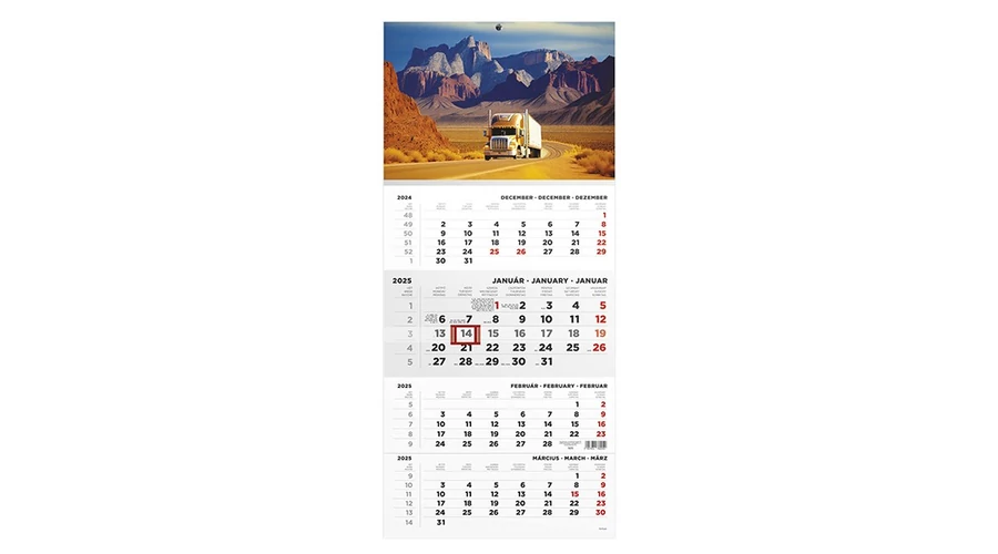 Speditőrnaptár TOPTIMER T079 1 tömbös 4 havi Kamion 2025.