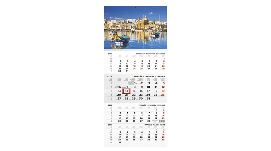 1 tömbből álló 4 havi speditőr falinaptár. A naptár teljes mérete: 315x693 mm. Reklámfelület: 315x480 mm.