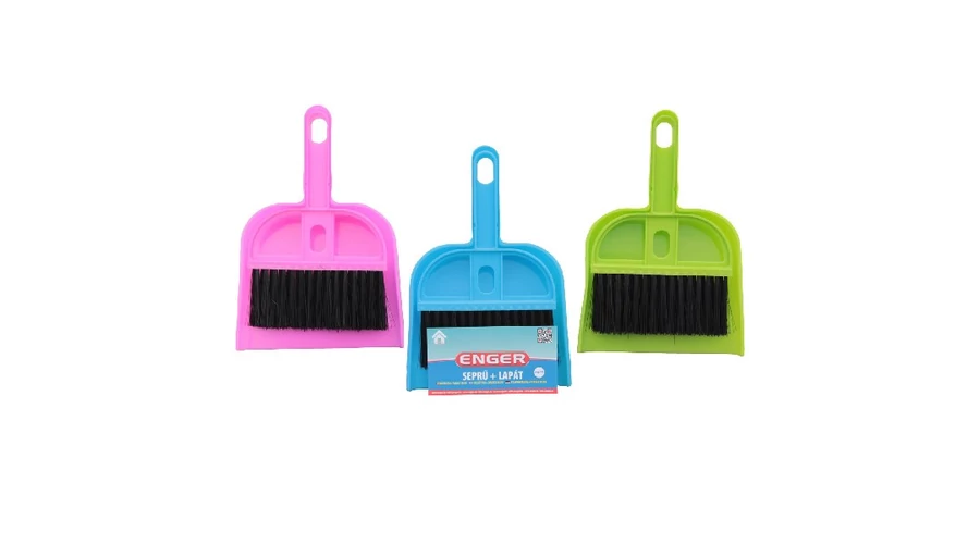 Szemeteslapát + hosszúszálú seprű vegyes színekben