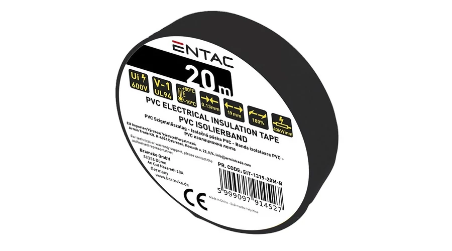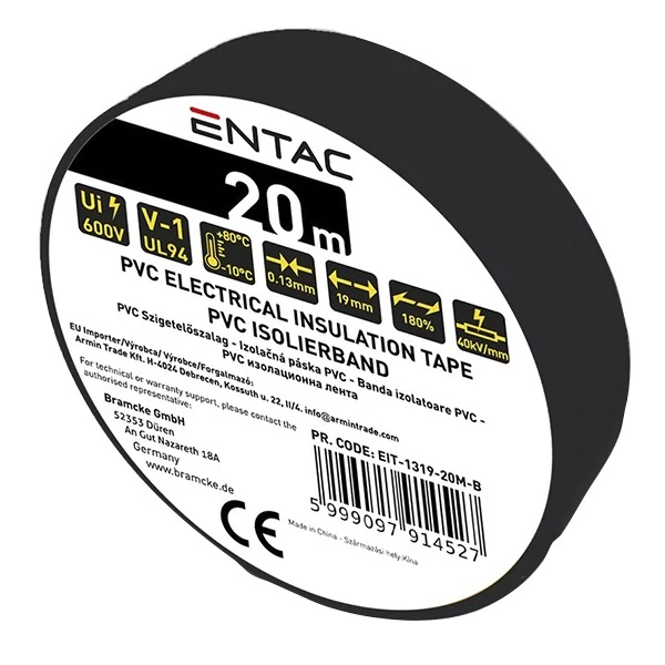 Szigetelőszalag ENTAC 19mmx20m fekete