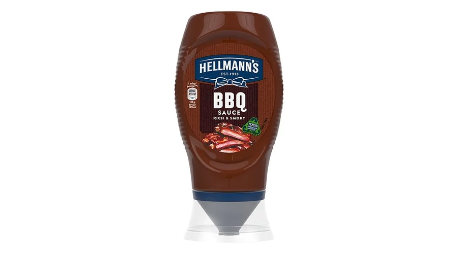 Víz, Cukor, Fehérborecet, Sűrített paradicsom, Cukornád melasz, Módosított kukoricakeményítő, Só, Worcester szósz (víz, glükózszirup, cukor, malátaecet (ÁRPÁVAL), só, aromák, vöröshagyma-kivonat, SZARDELLA, citromlésűrítmény, fűszerek, zöldfűszerek, napraforgóolaj, fokhagymapor), Napraforgóolaj, Fűszerek (vöröshagymapor, fokhagymapor), Füstaroma, MUSTÁRLISZT, Füstölt vöröshagymapor (vöröshagymapor, füst), Sűrítőanyag (xantángumi), Tartósítószer (szorbinsav), Aromák