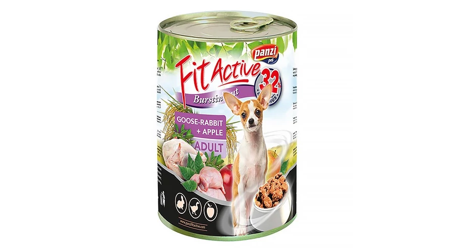 Állateledel konzerv PANZI FitActive kutyának liba- és nyúlhússal, almával 415 g