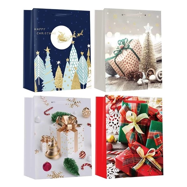 Dísztasak CREATIVE Special M 18x23x10 cm karácsonyi színes fényes szalagfüles