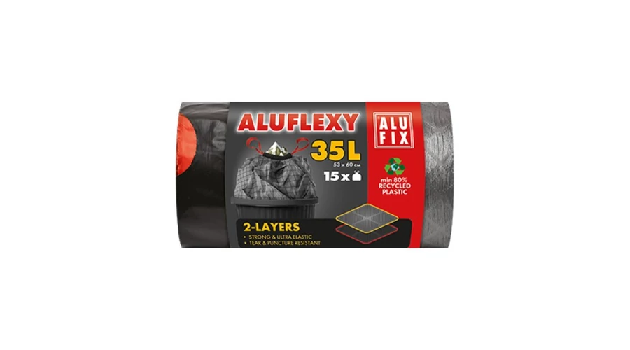 Szemeteszsák ALUFIX 35L Aluflexy húzófüles 2 rétegű 15 db/tekercs