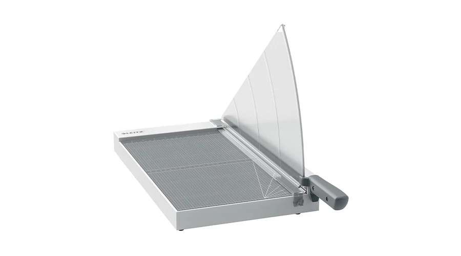 A Leitz Precision Home Office A3 papírvágó tökéletes otthoni és irodai használatra, papír, címkék, fólia, fényképek, laminált anyagok és kártyák vágásához. Ez az erős és könnyű otthoni papírvágó könnyedén, gyorsan és precízen vág egyszerre akár 10 A3-as (80 g/m2) papírlapot is. Egyedülálló EdgeGlow technológiával, amely megvilágítja a vágás helyét a jobb láthatóság és a maximális pontosság érdekében. Az átlátszó, kézi papírleszorító biztosan rögzíti a papírt míg az ergonomikus fogantyú kényelmes és könnyű vágást biztosít. Sima, laminált munkafelület, metrikus rácsvonalak, szögjelölések és vonalzók a lapok gyors és könnyű igazításához. A védőlemez teljes védelmet nyújt a vágás során, míg a vágókés biztonsági zár lezárva tartja a vágókést, ha nincs használatban. Ez a kiváló minőségű, rozsdamentes acél pengével, masszív munkafelülettel és 3 év garanciával rendelkező karos papírvágó hosszú éveken át pontos vágást biztosít.